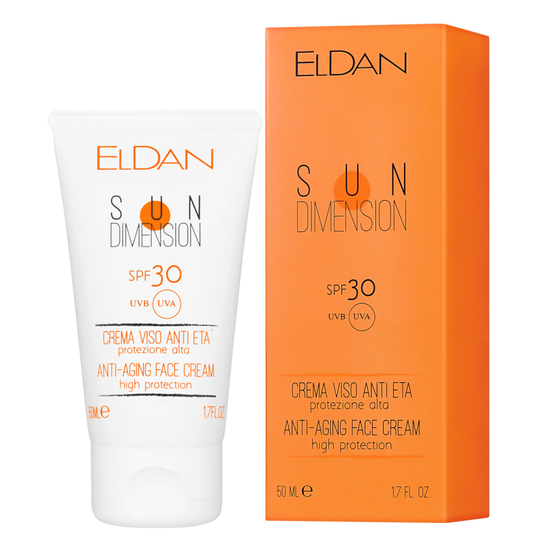 Солнцезащитный крем SPF 30 ELDAN с антивозрастным эффектом.