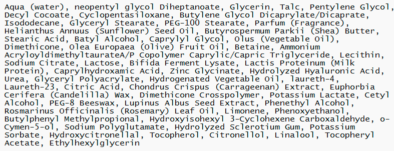 экстракт красных водорослей (ирландский мох) - уменьшает трансэпидермальную потерю влаги, регенерирует, оказывает антиоксидантное действие, повышает метаболизм